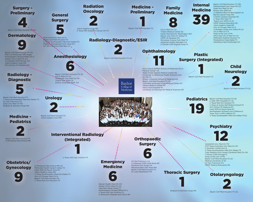 McGovern Med (Houston TX) Sorry y'all, this list just states what specialty everyone matched in. If McGovern publishes another list with which residencies everyone went to, I will edit this post.