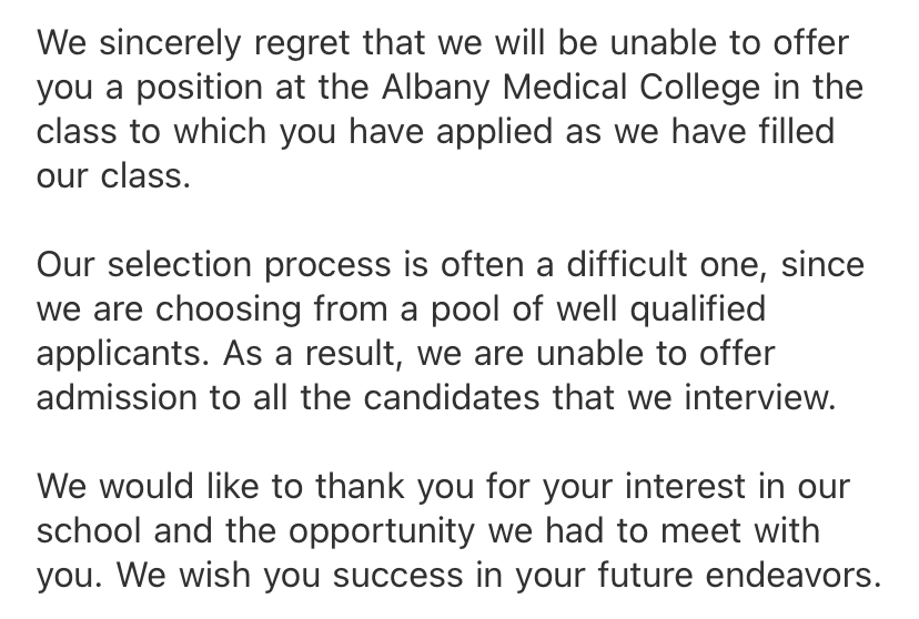 That’s a good point! This secondary was so expensive and they can’t even have the courtesy to reject us….medicine is such a bureaucracy smh