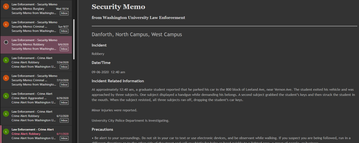 Jeez that sounds scary. Yeah imo WashU felt relatively safe, but at the same time, St. Louis is still a city so be careful and don't be stupid.Coming from an undergrad campus with crime alerts multiple times a day and bikes stolen if you don't lock your tires/wheels/pedals/literally every part of your bike, I hate that this sounds pretty safe lol my standards are so low now