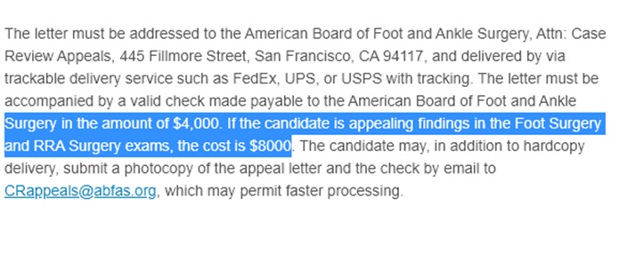 Did I read that right? $4K or $8K to appeal a failed case review? That is 8x more than the cost of the original exam itself!