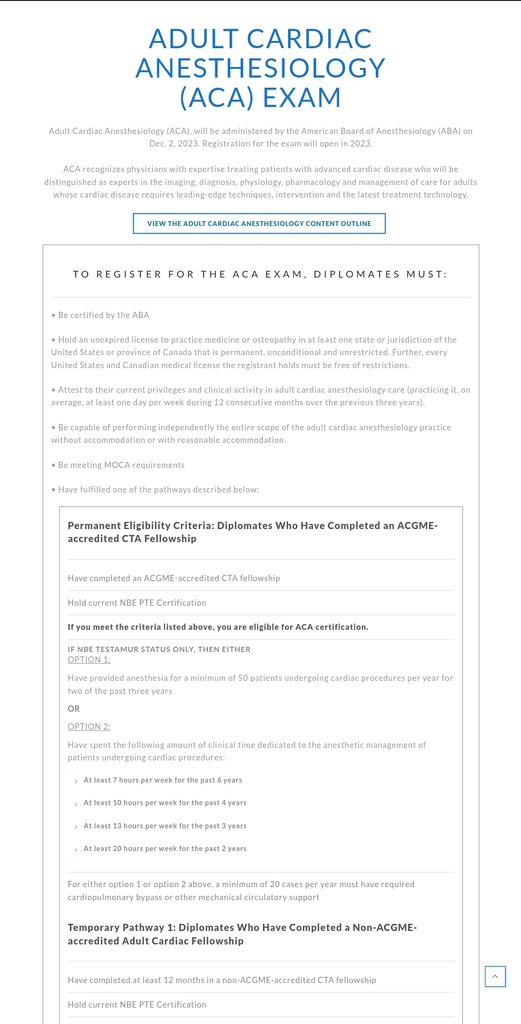 ABA just announced that they’re creating an adult cardiac subspecialty board certification (and exam). They say they’ll start offering the exam as early as 2023.