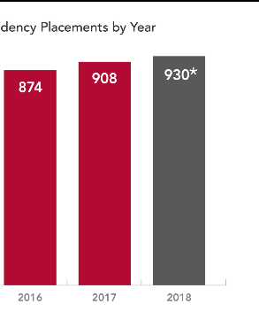 SGU total US residency placements by year: