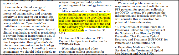 In hospital outpatient environments, general supervision has been kosher since January 1st, 2020.