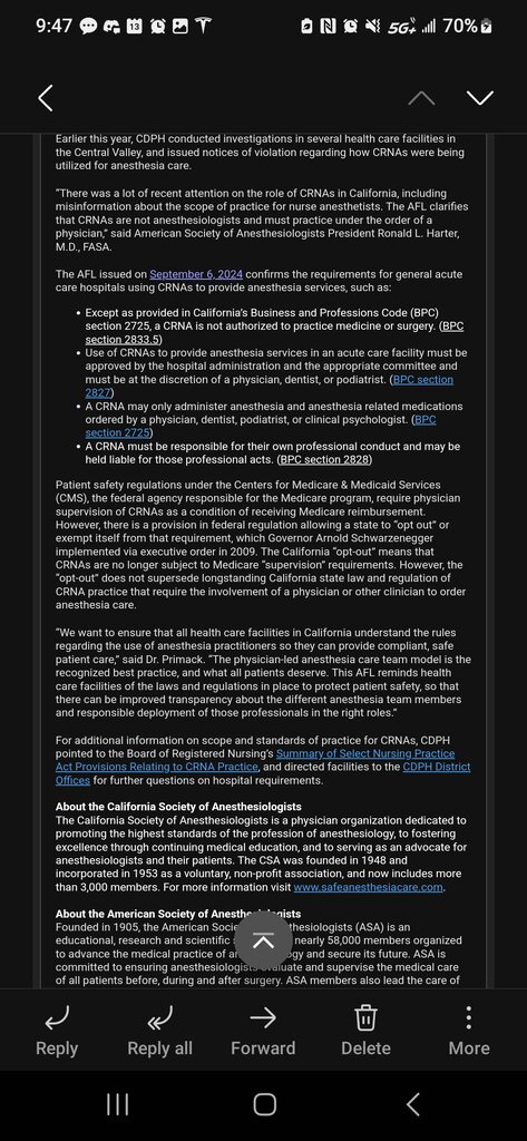 Finally, hopefully, those crNas accept the message… cali ain’t lettin’ them practice independently. However I won’t be surprised if they fight this… they are woefully so egotistical. The statement clearly says they are not allowed to practice medicine. This makes me happy inside[emoji23]