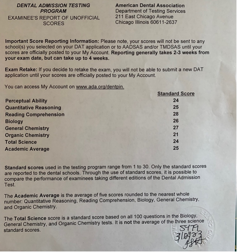 Hi everyone, I took my DAT earlier this week and thought I might do a breakdown. Before I took the test I learned a lot of helpful information from others’ write ups, so hopefully this information can help somebody else!