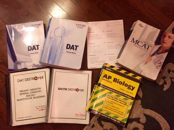 I am selling all of my old DAT Study Material for a great price! Includes: DAT Destroyer 2011, Math Destroyer 2011, Kaplan DAT Review Notes 2011, Kaplan Lesson Book 2011, CliffsAPBiology 3rd Edition, The Princeton Review MCAT Physical Science Review 2009 Edition and various Kaplan Flash Cards.