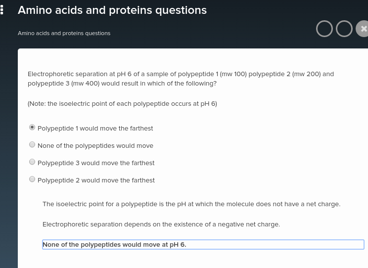 (Note: the isoelectric point of each polypeptide occurs at pH 6)