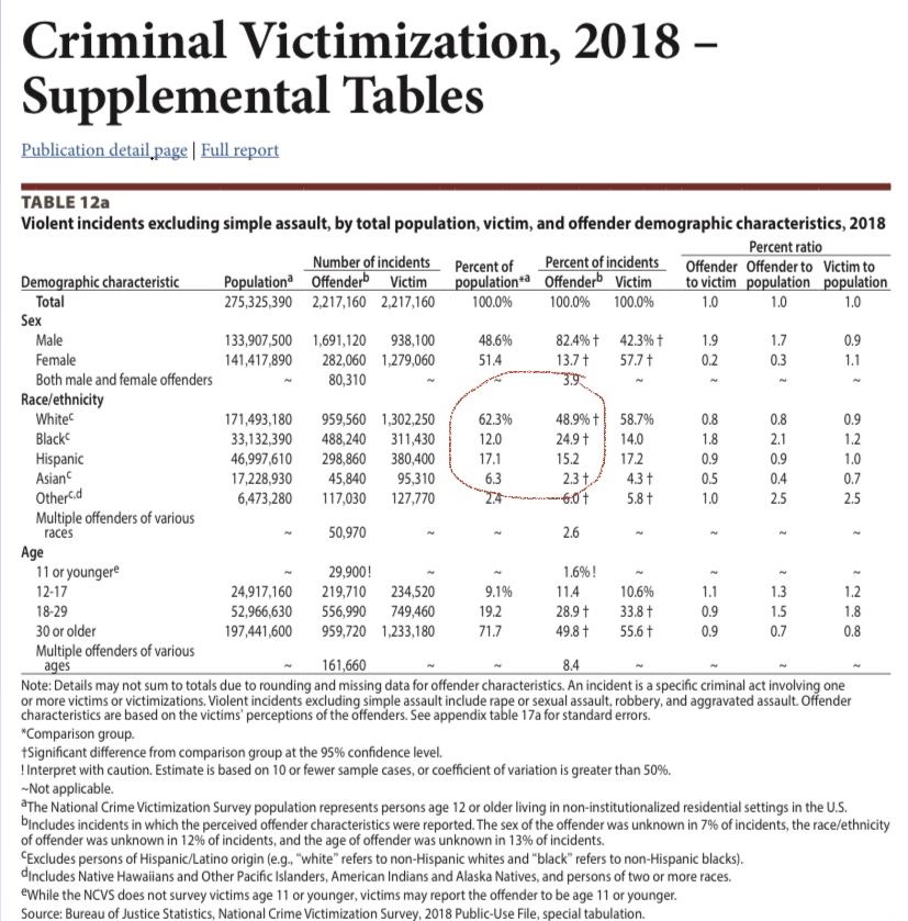 His post is one hell of a dog whistle if you ask meWhat is the intent of your post? Are you are arguing for racial profiling? It looks like whites commit more crimes than any other race by a large margin.
