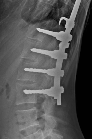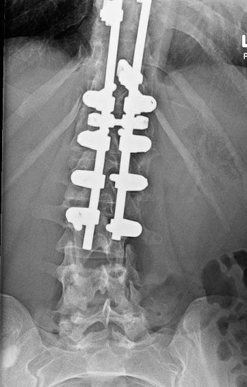 With the harrington rods, I think the issue is more the lamina hooks or wires causing scarring, making it hard to drive, and taking up space, but her setup doesn't look like it has any significant hooks above T11.