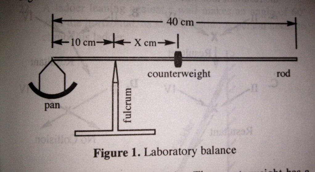 Based on the picture in figure 1 (attached), when calculating the mass of the pan, the fulcrum exerts:
