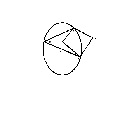 Explanation:The measure of the central angle at O is 100, twice that of the inscribed angle of 50, since both angles meet at the same points A and B. The central angle of 50 also divides the circle into two arcs measured from side of AB, 100 and 260. The measure of the external angle x, since it is the result of the meeting of two tangents to the circle, is equal to half the difference of these intercepted arcs: x= 1/2[260-100]= 80