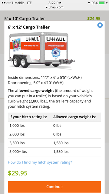 I just typed trailers only and like a midsize one. 5X10 or something. It then asks for your zip code and vehicle make and model I think. I'm in Dallas area and it pulled up options my vehicle could handle. I may go like 6X12. But from my screenshot you see they're cheap. If anything I'd call and ask if you can't onlineI tried looking it up the trailer and it was coming up as 200+ for me. Did u do something special?