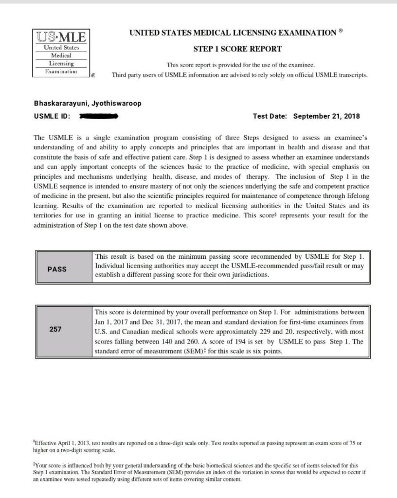 Waiting period – Usually result will be out by 3 – 4 weeks but in my case it got prolonged to 8 weeks because of verification of credentials. This phase of waiting for the score is worst part. I had flashbacks and nightmares of getting low score and I had some sort of frustration and regret of not giving my best. I tried constantly of not thinking about my result but my efforts were in vain. I used to google about post step1 and everyone used to give me hope and solace that you should trust your practice scores they somehow are going to appear on your real test score. Now I realize that those comforting words to be true.