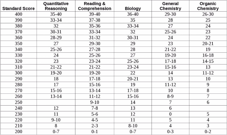 Hi! I found this conversion chart that includes physics when I was studying for the OAT a few months ago and I'm pretty sure that it's accurate except for the RC because of the same reason 97thaik already stated.