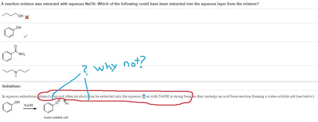 How come NaOH (a strong base) will deprotonate phenol but not other alcohols?
