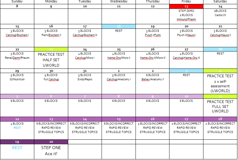 Edit: that first double NBME (1 and 2) is done over spring break. That bit got cut off.