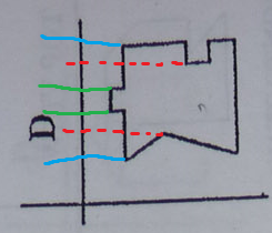 likewise, in d, the first line, the front on the indentation would form the dotted line seen in the top veiw, the same dotted line that is formed from the 'back' of the circle, and would also form a dotted line for the back 'gap' portion of the indentation, but this would not be seen as the boundary line of the square would align on top of it, making d also an acceptable response..