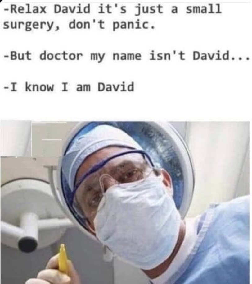We have a few mumblers at my workplace, and they always get mad when the circulator or the assistant or the anesthesia staff doesn't hear what he is saying and he has to repeat himself 🤣🤣