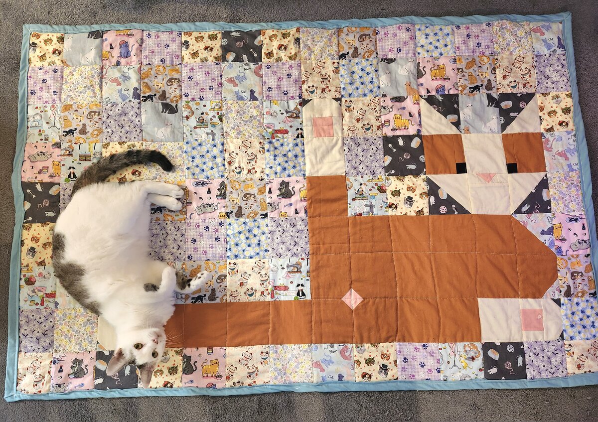 Most of my hobbies are more active/outdoors, but my partner got me into quilting a couple years ago, and here are a couple things I've made (without her having to take over or coach over my shoulder 🤣)!