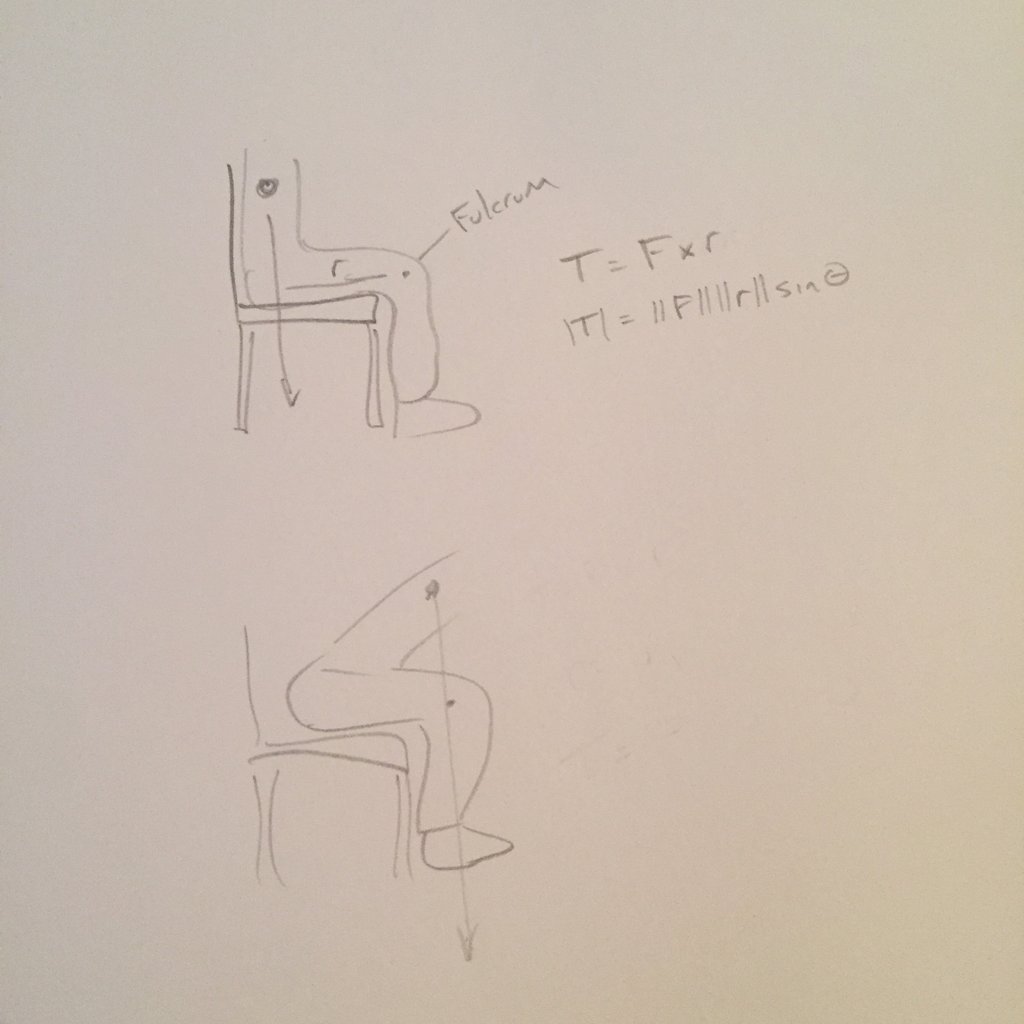 To me, it seems that the person is in equilibrium while sitting because COG (around the belly button area) is within base of support. Im not sure how the torque equation relates to the concept of stability here, nor do I understand how the chair contributes to stability from a physics perspective. Would someone please be able to help me out?