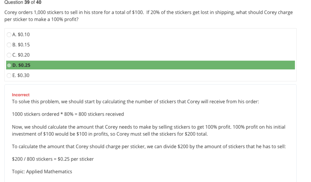 How do you figure 200$ profit in the explanation. Before it was 100$, now it jumped to 200$.. how and why does that happen if he only lost 20% of stickers. Thanks