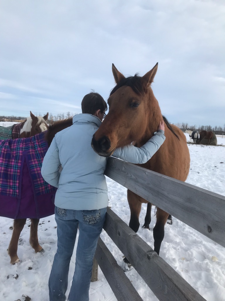 I met my mare when she was 48 hours old, and I bought her on the spot. Her breeder is one of my very best friends. I knew she was likely going to be my last horse, and I had so many plans and dreams and hopes for our partnership. She's 5, and unstarted due to the demands (both time and financial) of vet school. I've done some of her groundwork, but she's been in a different part of the province from me for most of the past 6 years even if I was still up to starting my own youngsters, which I'm not.