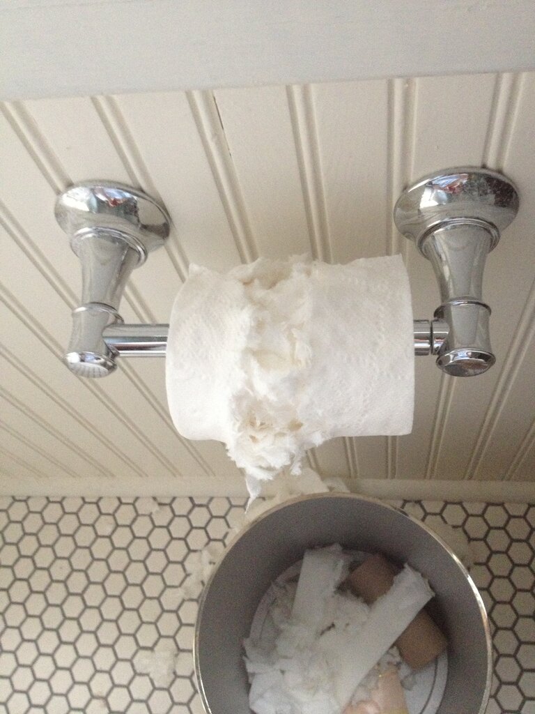 My parents Cavalier dog loves to grab the toilet paper and pull it all around the house. So you walk in from work or whatever and there’s a giant trail of TP all through the living room. She does it no matter which way you put the roll. But she only does it intermittently so they still leave the bathroom door open.