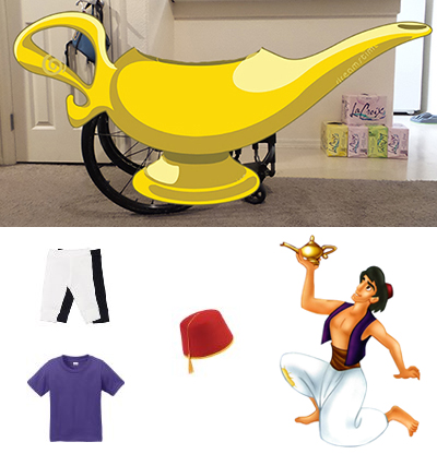 Ok, so I've begun this year's Halloween costume! I decided that I am going to make my wheelchair even more obnoxiously big this year. It's going to be decorated as the lamp, I'm going to dress as the Genie, and my service dog is going to be Aladdin.