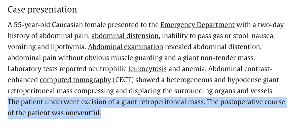 This patient has a dedifferentiated RPS, the biopsy was performed in the solid mass in the upper left abdomen. It's a high-grade liposarcoma, not metastatic.
