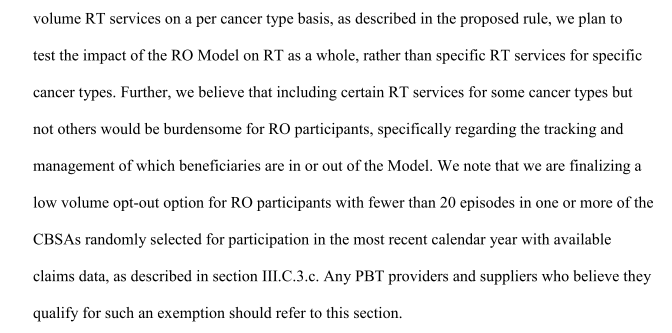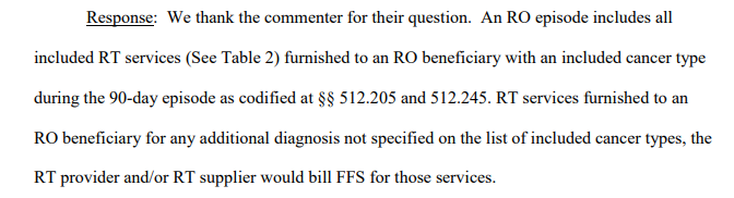 My admittedly nihilistic concern is that this will marginalize Medicare patients in a much more widespread manner than is seen now. Ostensibly, this is trying to discourage the unscrupulous provider from doing 25 fractions for a single, simple bone met, yes? Alright, so if someone was willing to do that in the current era - commit a fairly egregious sin of fractions to make more money - who knows what else they'll do?