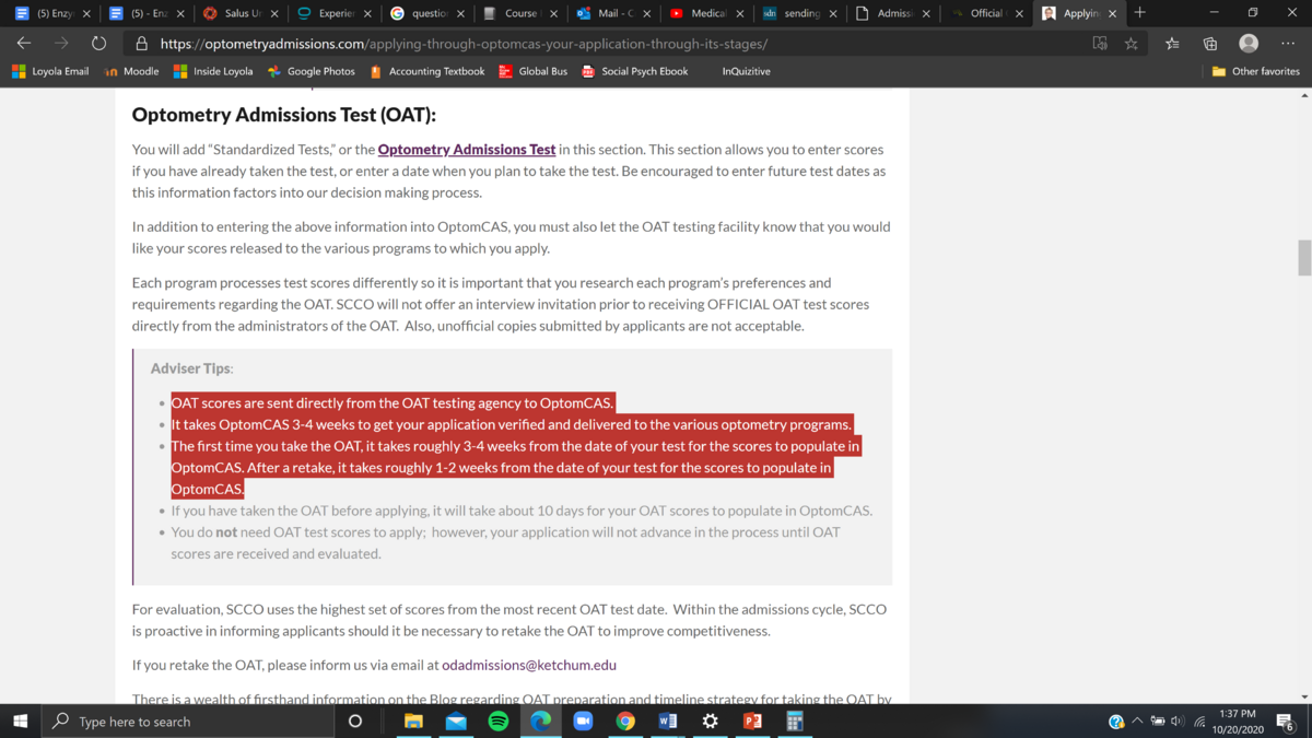 Hi! I am trying to send my OAT scores but I am confused on the wording on Optomcas. It says that the scores must be sent to Optomcas but once I go to the ADA website to submit my scores, I can only select specific schools rather than optomcas. What am I doing wrong? Should I just click the schools that I applied to on Optomcas?