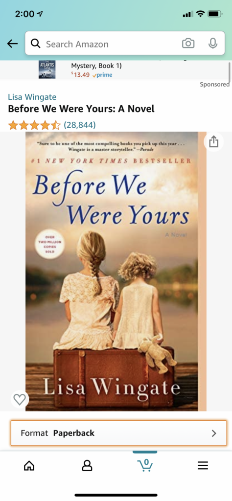 The book is called When We Were Yours by Lisa Wingate and holy cow. Go read it.
