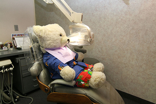 We are gonna run a private clinic called "A Teddy Bear's Smile" With a picture of tooth knockn on a billboard 🙂. He will give free hugs to patients, and let them touch his fluffy fur. And give bottles of honey instead of lollipops because he is a bearYou two will be dental bffs.