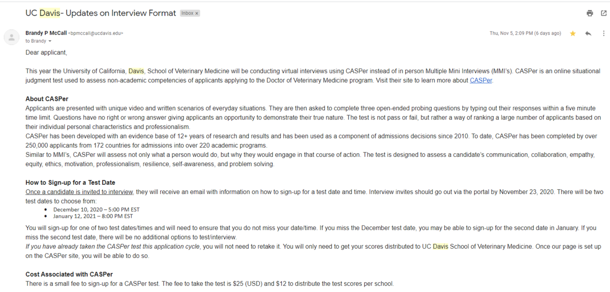 Try not too worry too much! I know we are all stressed about it, *especially* if Davis decides to use this as an all or nothing for people invited to interview, but this is a weird application cycle and we just have to roll with the punches unfortunately 🙁