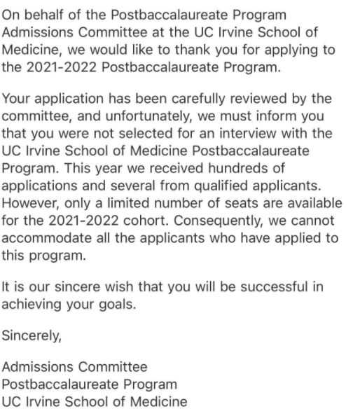 Join the applicant groupme that I started for some great advice. The link is a few posts back on this thread!Hello, I am late to the forum. I got rejected from UCI last Friday, but Davis offered an interview on Tuesday. Anyone have any tips to prepare?