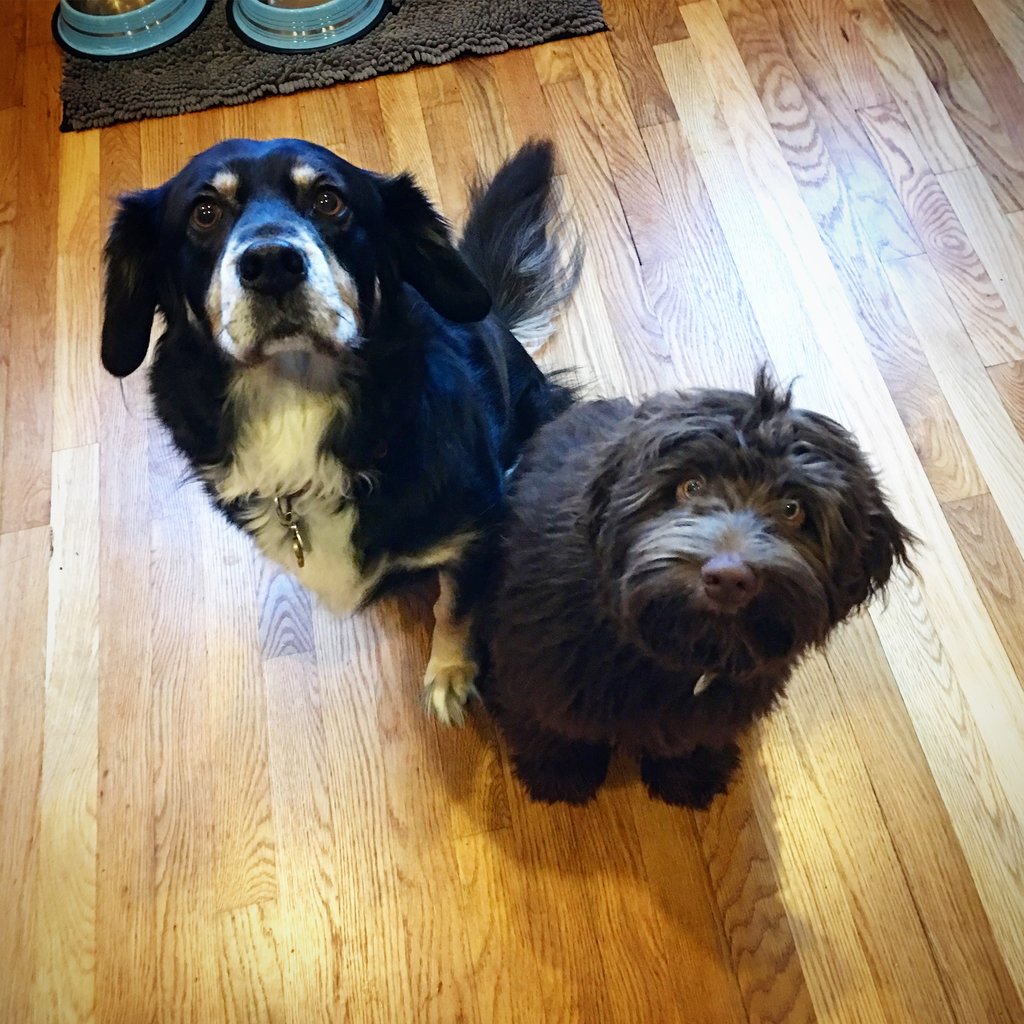 For a new/old distraction: I got the DNA results back on the three-legged dog! And they were NOT what I expected. He's the tri-colored one on the left in the photo below. Any last minute guesses before I share for those who are interested/looking for a distraction? (@lhmhtd tagging you because you said you were interested 🙂 ).