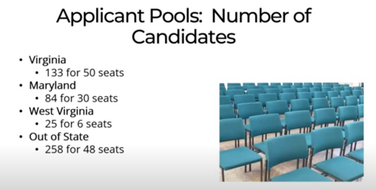 As for the numbers- here is a screenshot from the info session with the numbers for each pool of interviewing applicants and the seats to be filled.