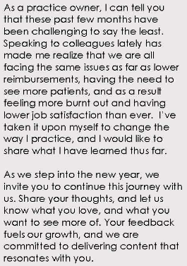 So often I hear colleagues saying that they do not want to be a salesman in their practice. I hear “I’m not doing that, I don’t want to sell, I’m a doctor”. From a business management approach, as the physician, you also must invest in the health of your practice. I learned a long time ago that anything that you do to improve your practice is an investment. Like anything else, you invest in something that you expect a return on.