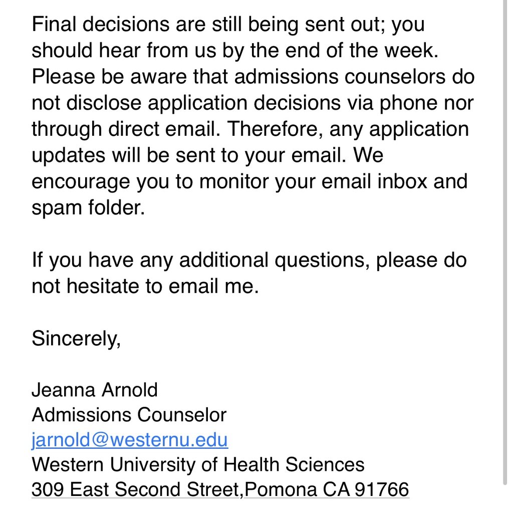 Or you know, a decision of some sort lolPart of me wants to email and ask if they plan on releasing more acceptances but I don’t want to be annoying
