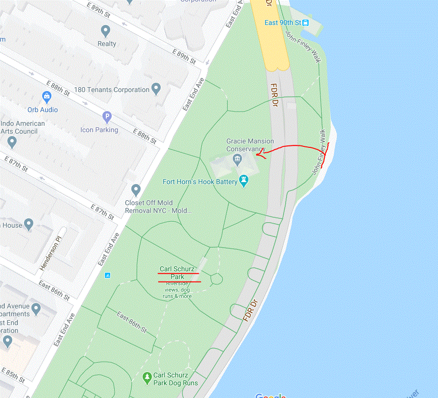 That picture was taken in Carl Schurz Park, which is literally steps from Mayor De Blasio's house, Gracie Mansion. If you turn to your left, you can literally see it, if not for the trees. It's literally only a few feet away.