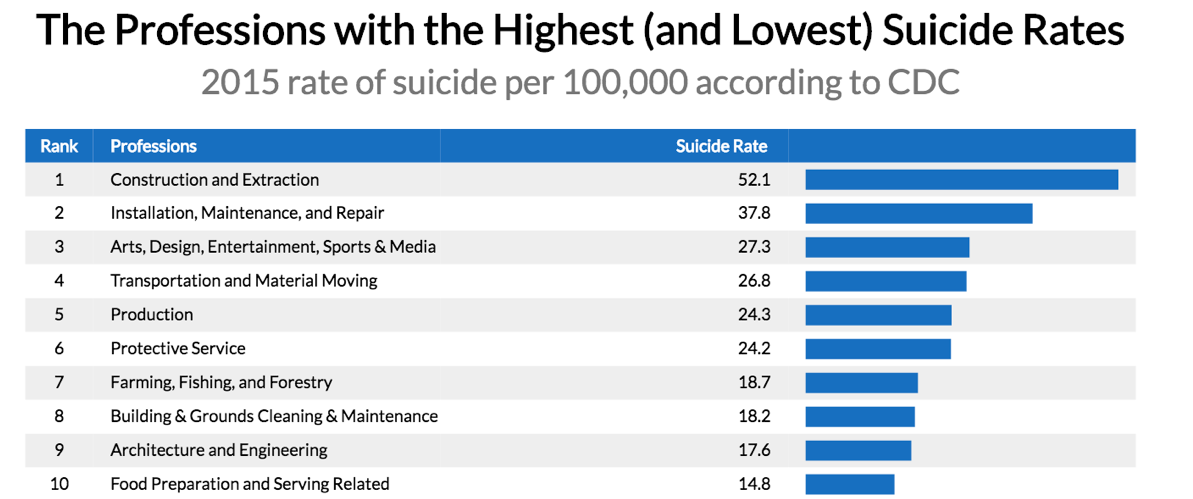 300/7.138 = 42 physician suicides per 100,000 physicians. So it should rank #2 on the CDC list.